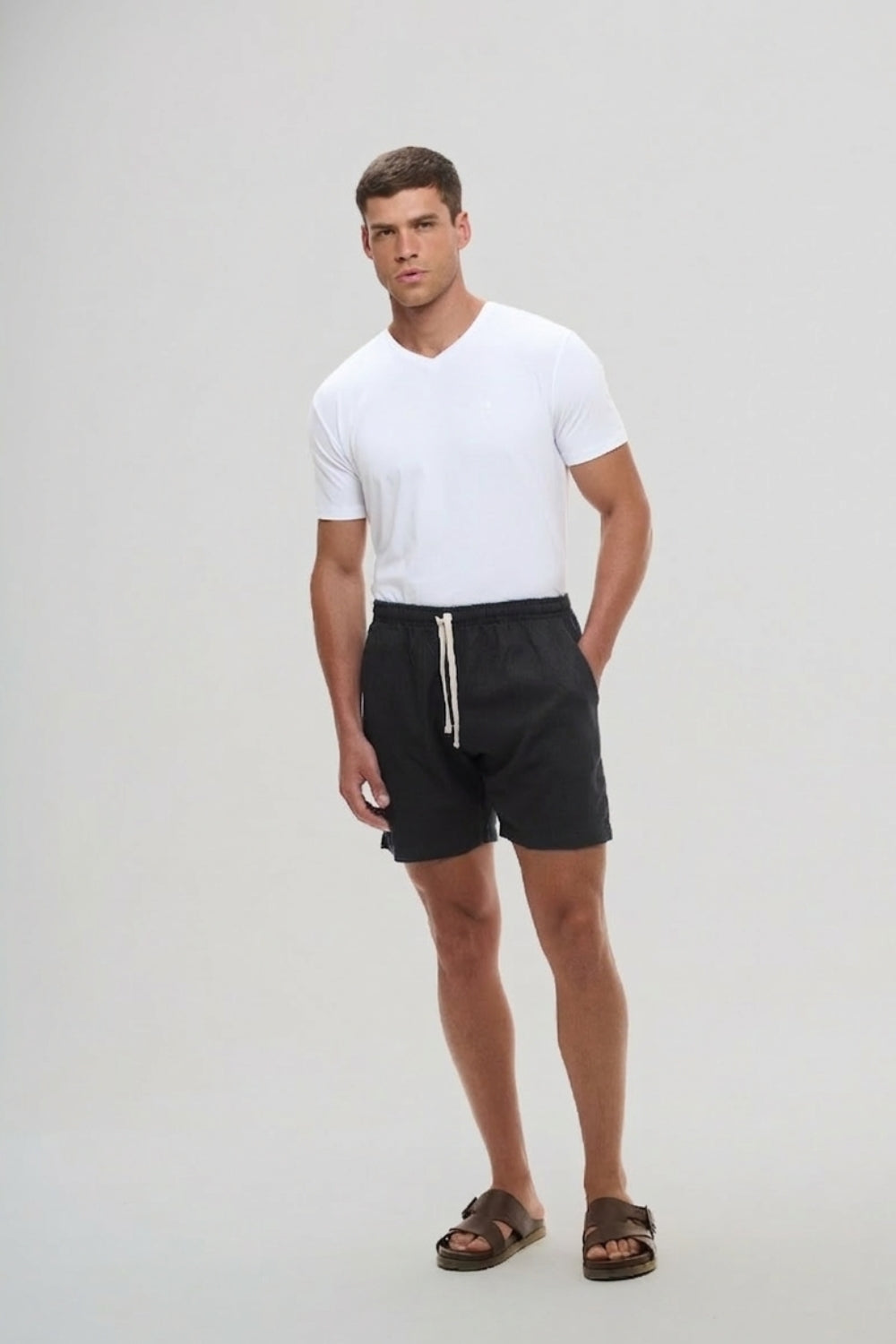 A mistura de linho e viscose cria uma textura natural e um caimento fluido, ideal para momentos de lazer, viagens ou dias mais descontraídos.